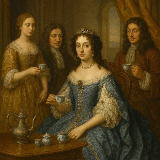 1662年:王室結婚がもたらした茶習慣 – 1662年5月、ポルトガル王女キャサリン・オブ・ブラガンザ(1638–1705)がイギリス王チャールズ2世に嫁ぎました。この王室結婚はイギリス社会に茶文化が根付く大きな転機となりました 。キャサリンは幼少よりリスボン宮廷で日常的に茶を嗜んでおり、嫁入りの際にも自ら愛飲する茶葉を携えてきたと伝えられます 。