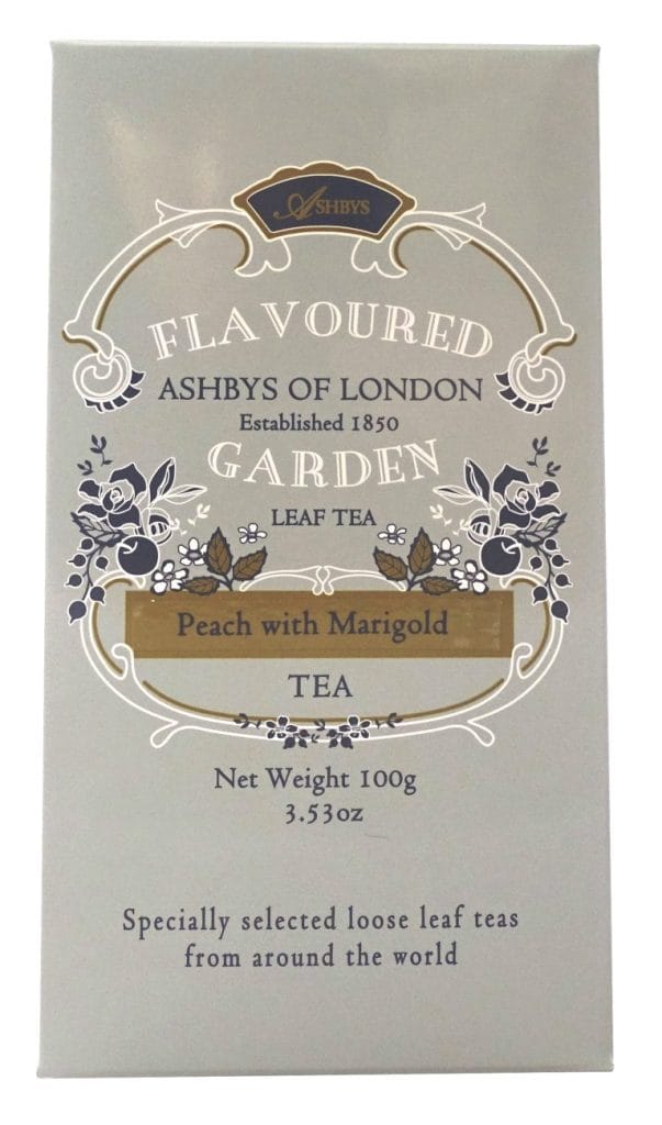 ASHBYS OF LONDON フレーバーガーデン ピーチ&マリーゴールド Aromatic tea / Flavoured Garden リーフ バッグ(TB): 40g(2g x 20個)サイズ:9cm x 9cm x 14cm定価 : 3,500 パッケージ 茶葉形状 中身 ASHBYS OF LONDON「ピーチ&マリーゴールド」紅茶のご... -