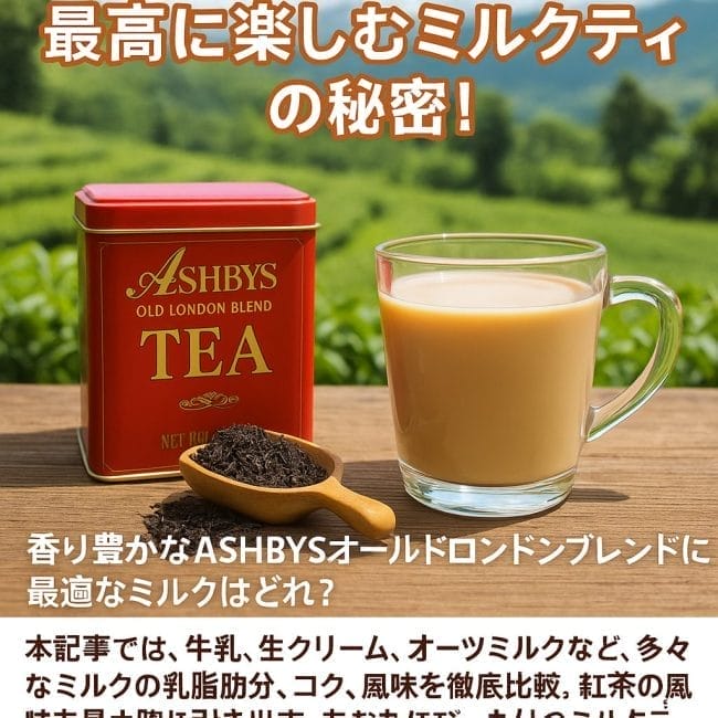 1. 調査概要 本レポートは、日本国内で販売されている各種乳製品および植物性ミルクのミルクティー適性を詳細に分析し、特にASHBYS(アシュビィズ)オールドロンドンブレンドとの相性を検証したものです。乳脂肪分、味わい、香り、コクの観点から総合的な... -